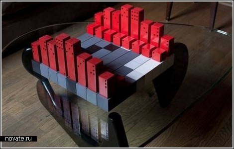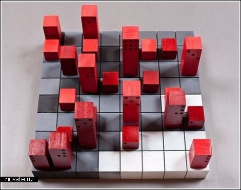 Дизайнер Скотт Круз (Scott Cruz), по всей видимости, очень любит две настольных игры – шахматы и домино. Этим фактором можно объяснить то, что он создал некий симбиоз этих игр. По всем правилам это – шахматы, а вот фигуры очень похожи на костяшки домино.Это раньше все думали, что шахматы и домино – две разные игры. Но, благодаря дизайнеру Скотту Крузу эти две игры стали весьма близки друг к другу. Ведь он создал шахматы, в которых в качестве фигур используются что-то весьма похожее на костяшки домино.